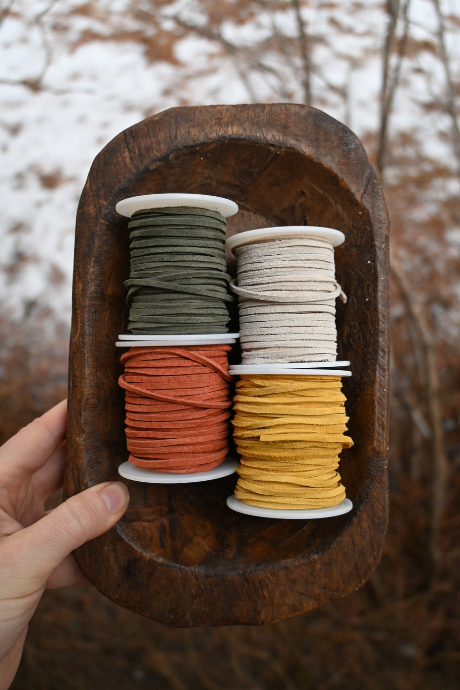 Please specify your choice of cord color in the 'Note to Seller' section at checkout, or reply to your order confirmation email/send an email to cali@oxbowcharlie.com after purchase. You can choose between rust, olive, gold, or ivory.