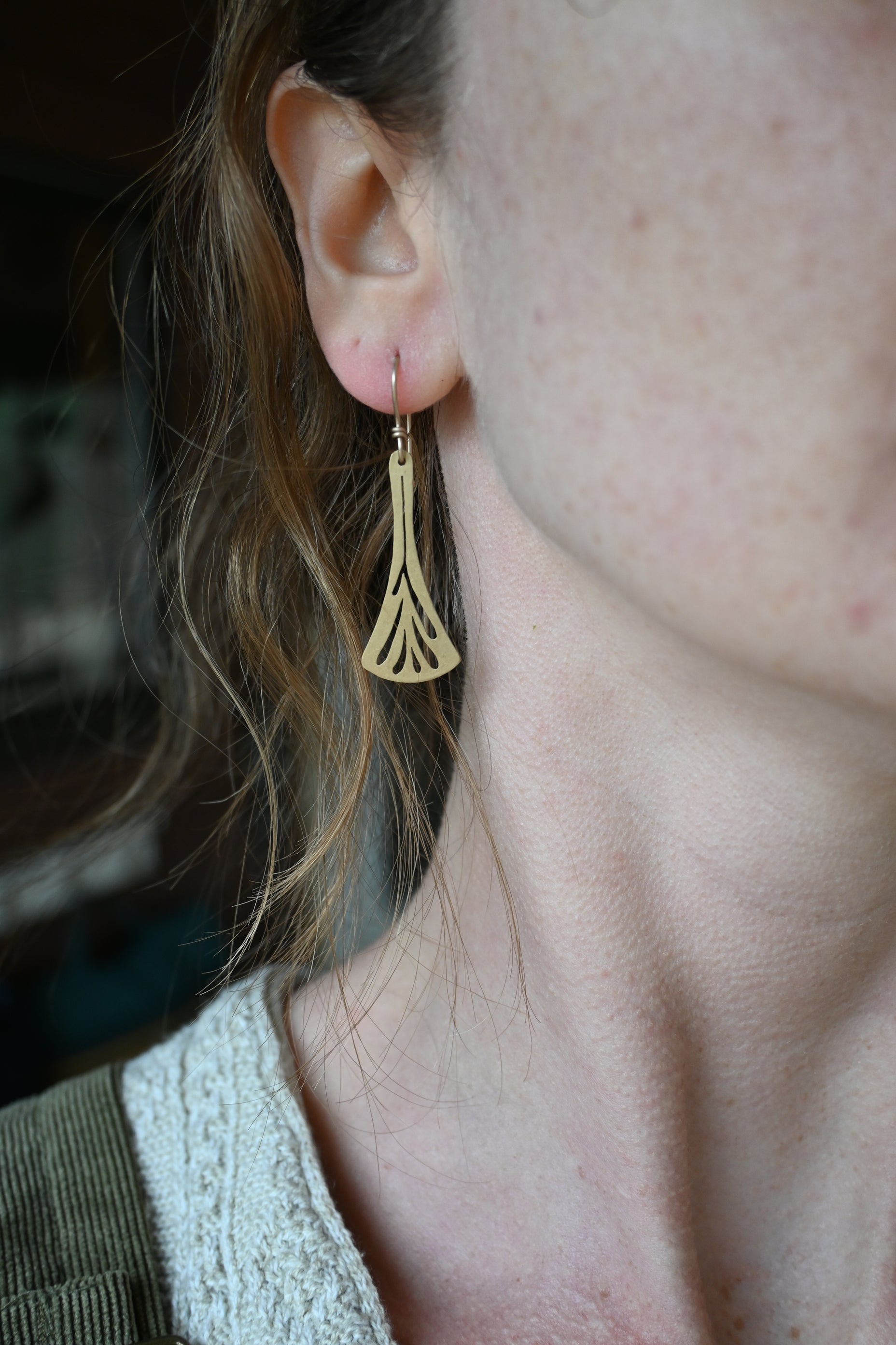 These earrings are made with brass sheet and 14k gold fill ear wires. Hand drawn + sawn petal silhouettes on each, a reminder of things that grow. Very lightweight and perfect for a day adventuring. Buffed for a matte finish.