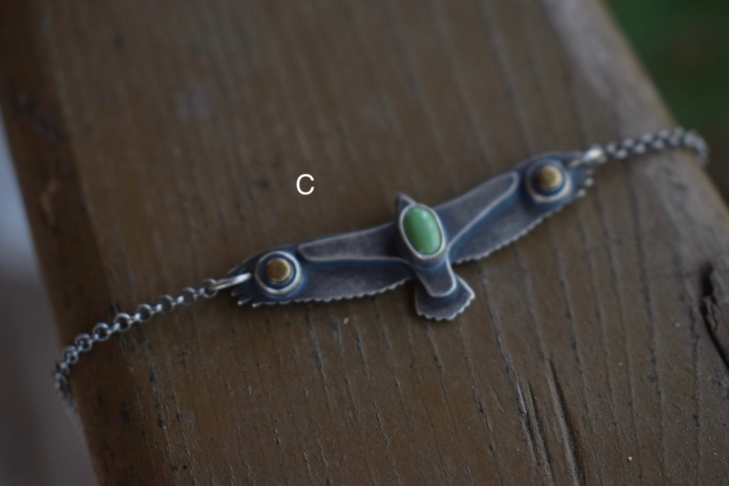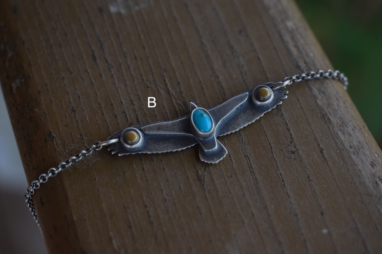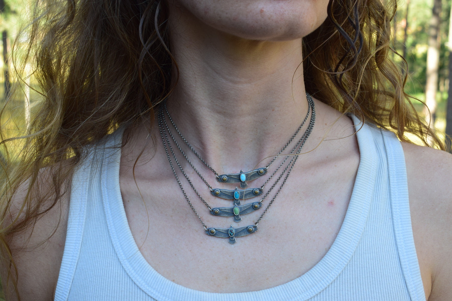 Hand textured to mimic the rugged life of the bird, dipped in patina to bring out the details and buffed for a matte finish. On a 16.5 inch sturdy chain, that can be adjusted up to 18.5 inches. To remind you to soar, to ascend, to keep moving upward when you can. Handmade slowly with care, one of a kind.