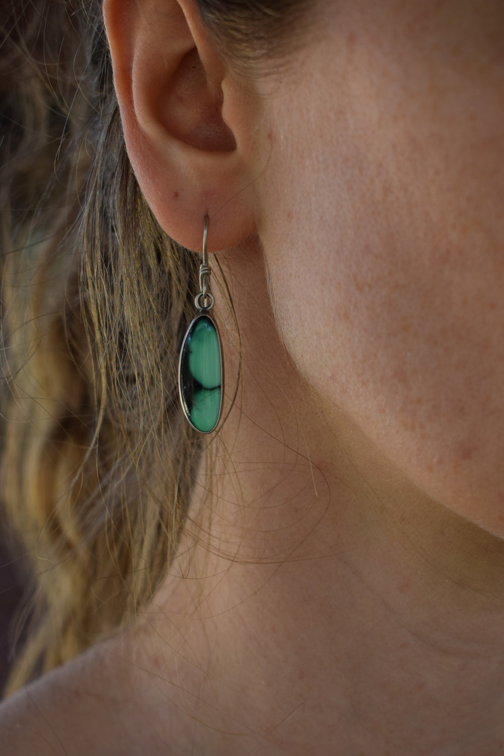 Gorgeous high grade Emerald Rose Variscite stones in a simple setting. Made for everyday wear. Dipped in patina and buffed for a matte finish.
